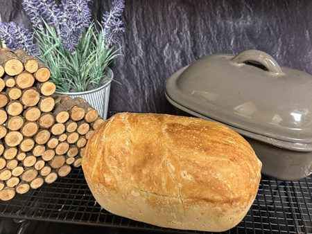 Tipp : für ein noch krosseres Brot die letzten 20 Minuten ohne Zaubermeister – nur auf dem Backrost – backen.